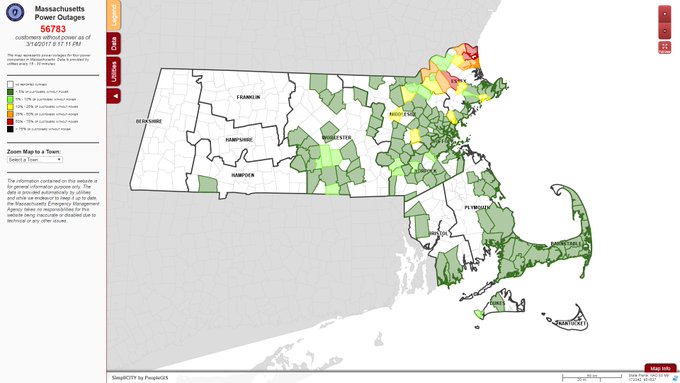 [Power Outages] As of 830 pm, still over 55,000 customers without power focused in northeast MA where 50-70 mph wind gusts occurred earlier.
